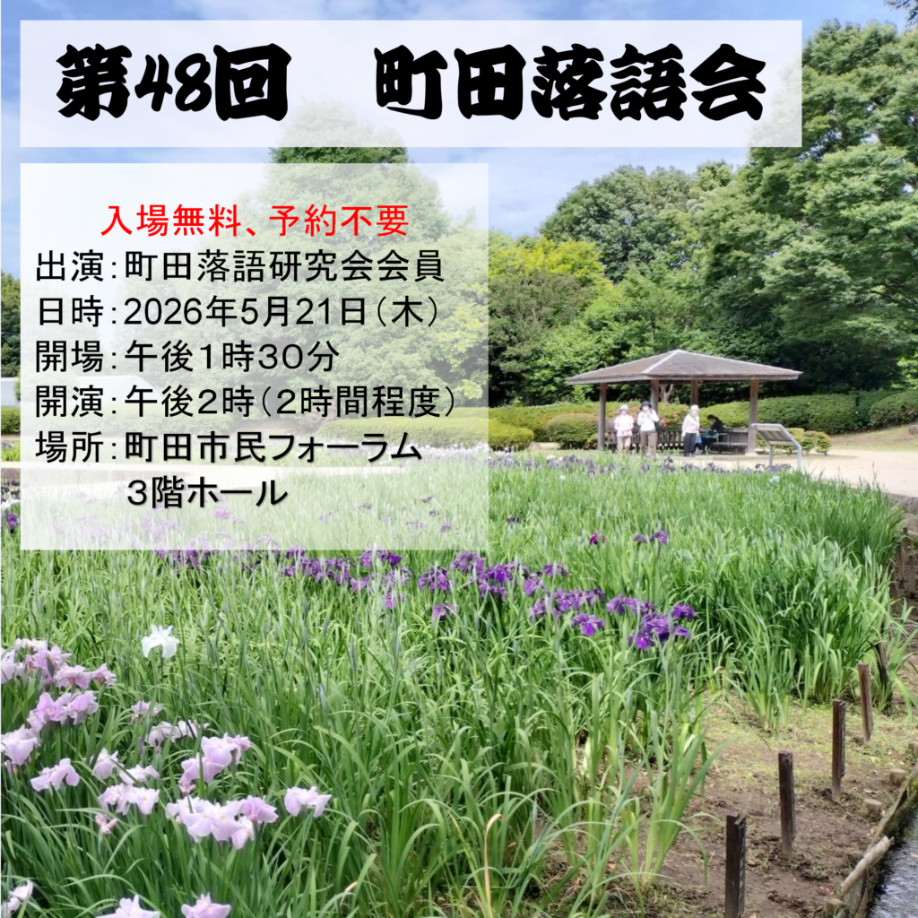2026年5月21日(木曜日) 午後1時30分開場、2時開演 @町田市民フォーラム3階ホール 予約不要、入場無料